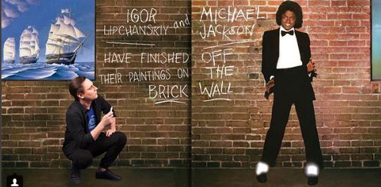 Na capa do icônico cd de Michael Jackson o blogueiro deixa sua marca no muro ao lado das do astro pop e ainda cria jogos de palavras e frases. Bem legal!