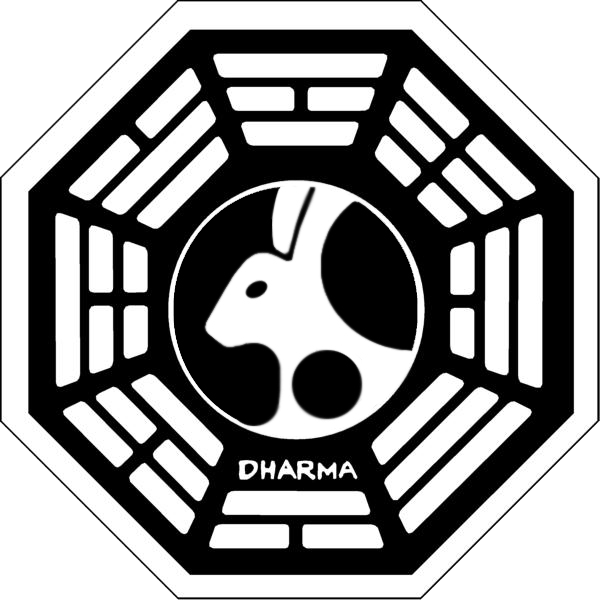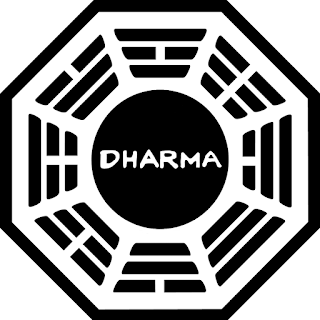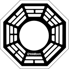 O logo da Dharma é um octógono com a palavra Dharma dentro, assim como os das outras estações que falo e explano logo abaixo.