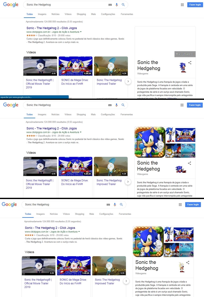 Experimente digitar "Sonic the Hedgehog" na caixa de pesquisa e do lado direito aparecerá o perfil do Sonic (Semelhante ao perfil do Thanos) e um Sonic que se movimenta e faz barulho se você clicá-lo. Se demorar para clicar, o personagem fica em posição de espera. E se clicar várias vezes seguidas ele faz um barulho e rola na tela. Se clicar por 25 vezes seguidas o Sonic se transforma em Super Sonic.