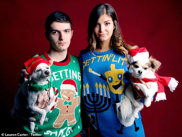 Sua tutora, Lauren Carter, queria apenas criar os tradicionais cartões de natal com seus cãozinhos, mas não imaginava a repercussão que isso teria. Em um post no Twitter ela disse o seguinte: