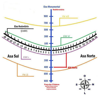 Foi aí, que durante aquele trajeto da W3 Norte, coloquei minha cabeça pra pensar: "Brasília é toda planejada e organizada. As Asas Norte e Sul, por exemplo são opostas, mas elas se completam. Tudo que tem de um lado, tem do outro. A Asa Sul corresponde a Asa Norte. A L2 Sul, por sua vez, corresponde a L2 Norte. E até mesmo os Lagos Sul e Norte são correspondentes". Resumindo: "Eu só me perco nesse lugar se eu quiser".