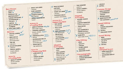 Os membros da AMPAS ao receberem as cédulas devem minimizar suas escolhas em apenas duas semanas (ISSO MESMO! DUAS SEMANAS!) para apenas cinco candidatos em cada categoria (exceto a de Melhor Filme que já há algum tempo tem variado entre 9 ou 10 indicações).